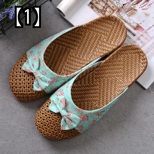 夏のアジアの草織り サンダル スリッパ リネン スリッパ 屋内 滑り止め 厚底 床 籐と草 アジアンテイスト