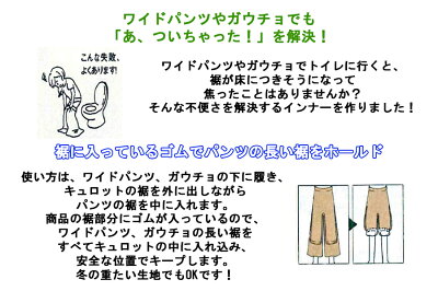 トイレで便利なペチキュロット 1枚 ガウチョパンツ ペチコート パンツ ロング スカート ワイドパンツ まとわりつき 透け防止 ペチパンツ スカーチョ スカンツ 無地 ベージュ M L LL